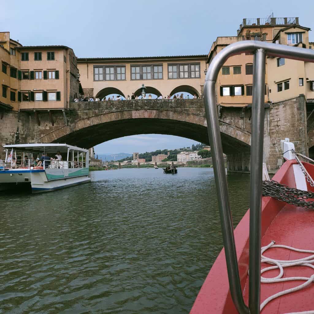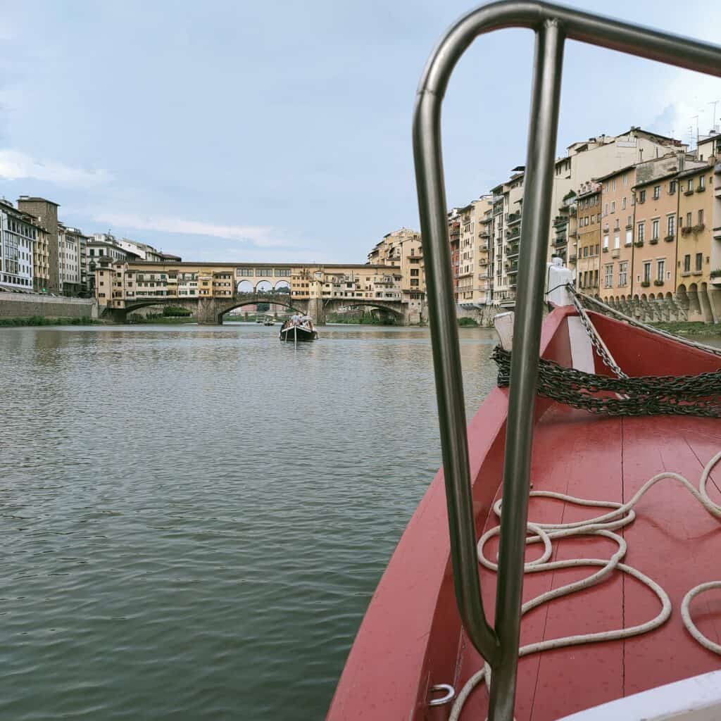 The tour will depart from our dock and we will be transported on a guided boat – according to an ancient Florentine tradition – by a sandman who will take us under the beautiful Ponte Vecchio to continue towards Ponte Santa Trinita and reach beyond Ponte alla Carraia.