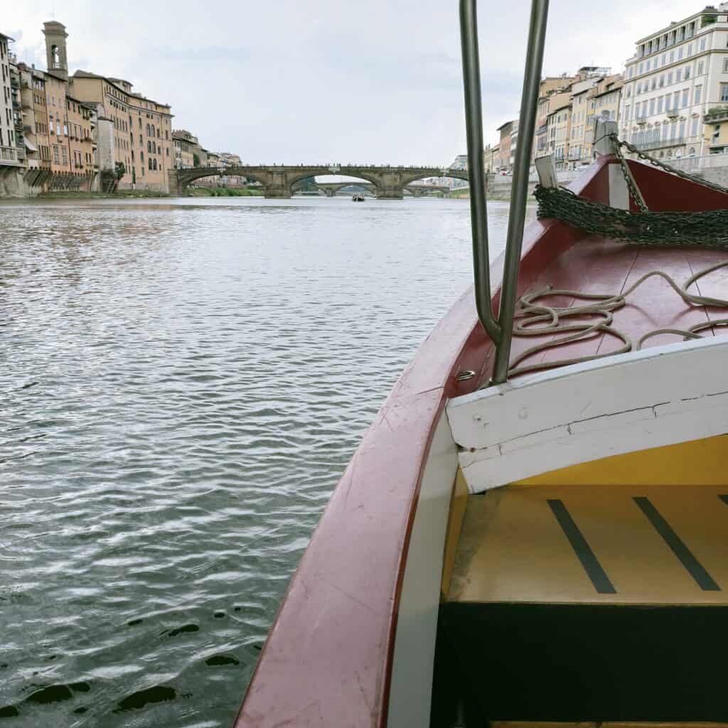 During the journey, you will have your guide who will illustrate the city of Florence, its monuments, and everything you can observe while navigating on the Arno River: Galileo Galilei Museum, Uffizi Gallery, Ponte Vecchio, Ponte Santa Trinita, Palazzo Corsini, the countryside landscape around Florence, explanation of Chianti.