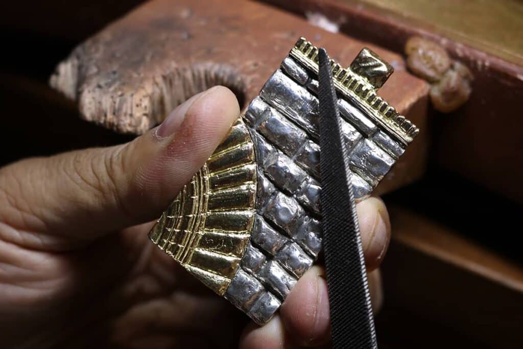 Among the various processing techniques used by the Penko artisan workshop, we recall the technique of the rusticated which draws inspiration from the homonymous masonry work used for the decoration of the facades of some Florentine historic buildings such as the Medici Riccardi Palace or the Pitti Palace, the art of metal fusion in cuttlefish bone, the technique of the ‘cesoro’ which is inspired by a hammering process developed by the ancient Mediterranean peoples used to create the famous ‘cesoro necklaces’.