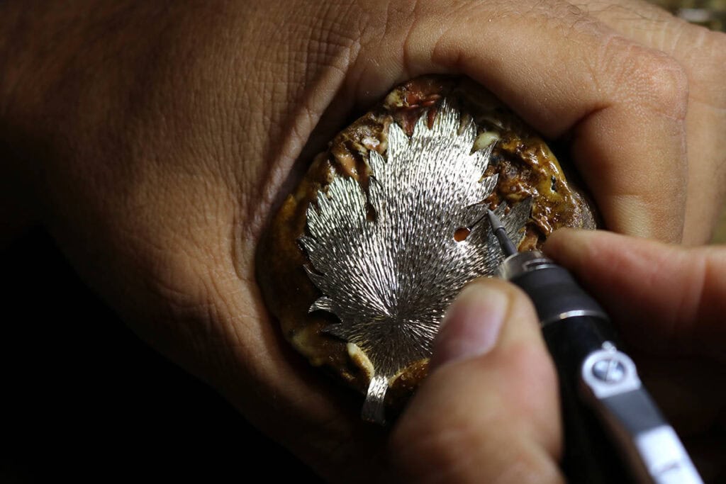 In 2008, an innovative goldsmith technique, known as the ‘penkato’, was added, which makes use of the diamond-tipped milling cutter, the chasing and the burin engraving to obtain a three-dimensional effect, typical of the classic burin engraving. Unique jewelry that are true works of art.