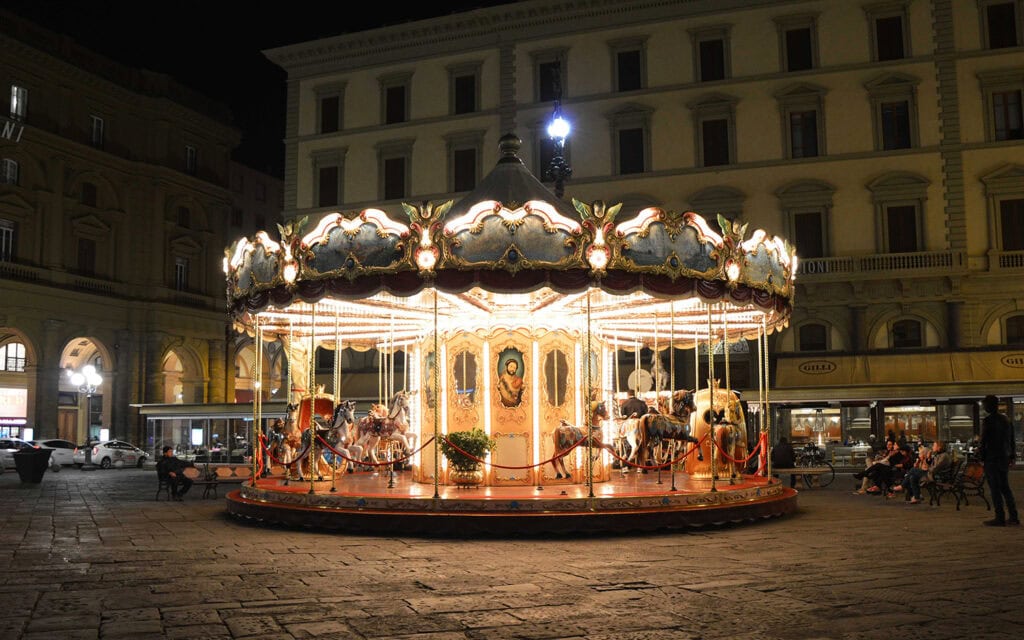 Un’altra tappa che sorprende molti genitori è la giostra storica di Piazza della Repubblica.
