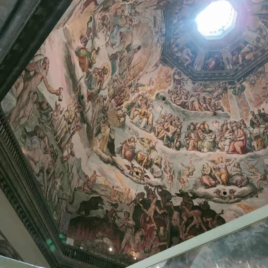 Visiteremo il suo interno con i suoi affreschi parietali, tra cui quello raffigurante Dante con la Divina Commedia realizzato nel 1400, il bellissimo coro a forma di ottagono su cui si affacciano le due Sagrestie, gli organi a canna, la tribuna centrale e le tribune ai lati dell’altare maggiore. Ammireremo sopra di noi l’immenso affresco del Giudizio Universale commissionato da Cosimo I de’ Medici a Giorgio Vasari e suoi collaboratori.