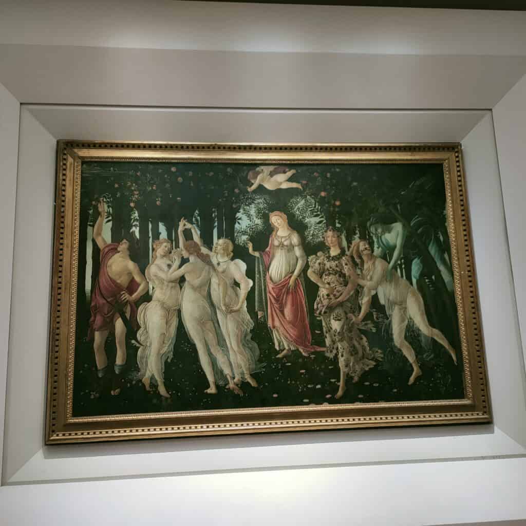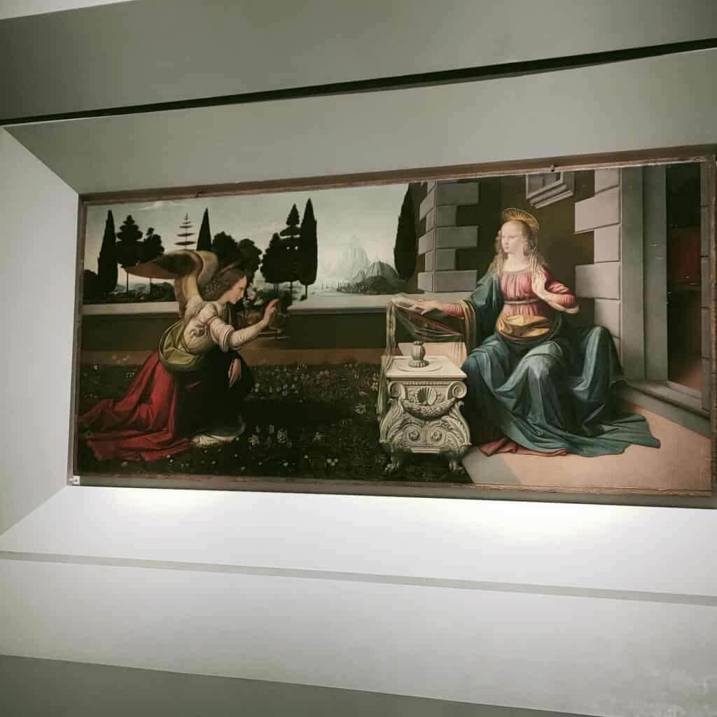 Tra le opere di spicco, la Maestà di Giotto, la Sant’Anna Metterza di Masaccio e Masolino, la Primavera e la Venere di Botticelli, l’Annunciazione di Leonardo da Vinci e il Tondo Doni di Michelangelo.