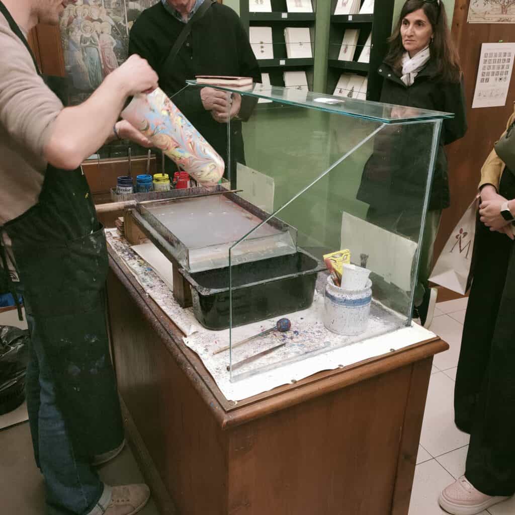 I maestri artigiani vi seguiranno nella vostra marmorizzazione della carta dandovi l’opportunità di creare il vostro prodotto da portare a casa nel ricordo di questa entusiasmante esperienza