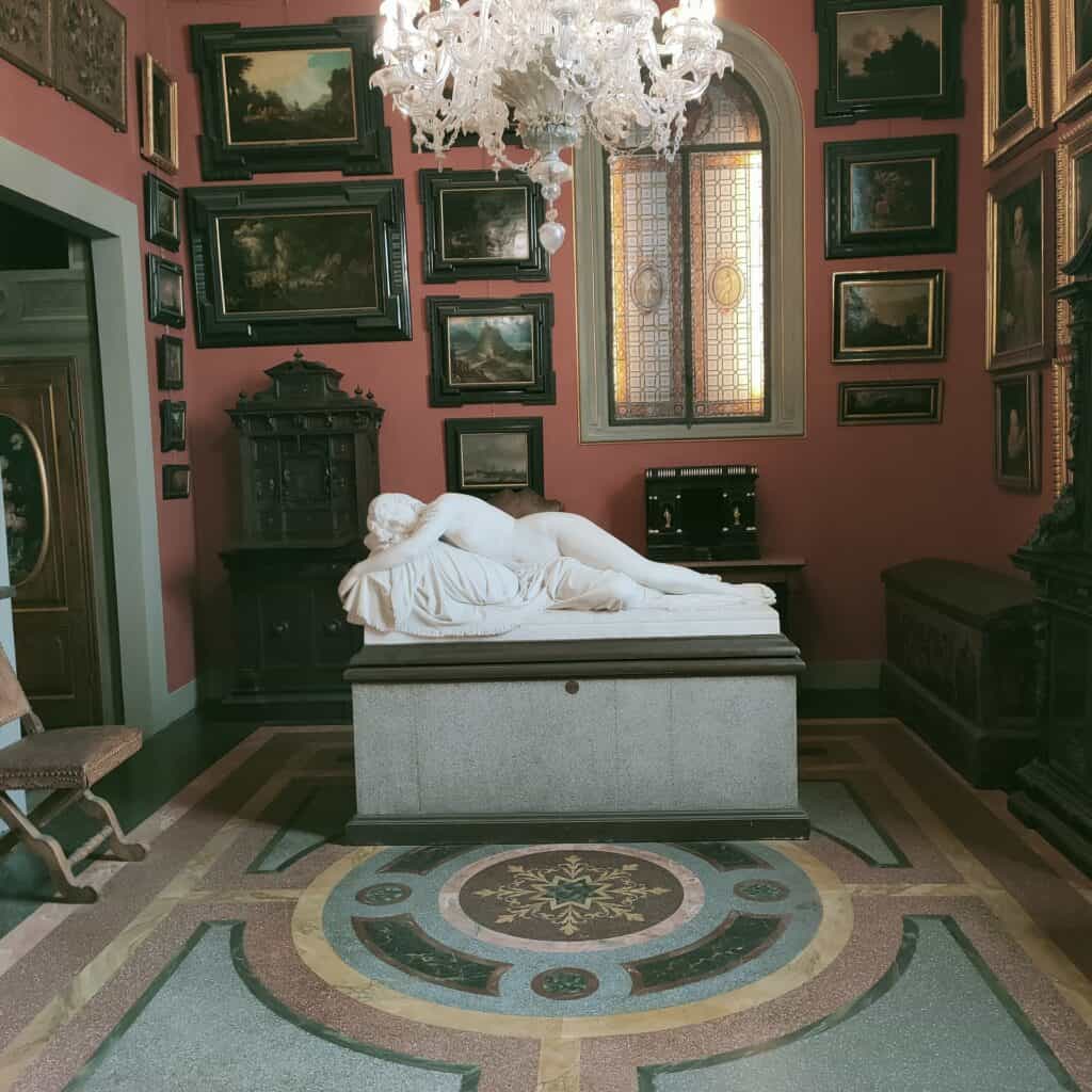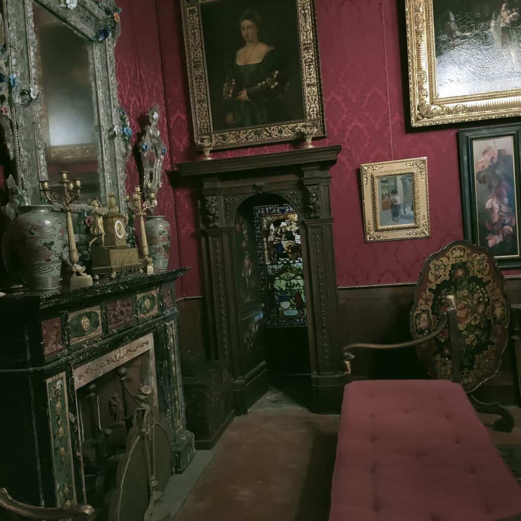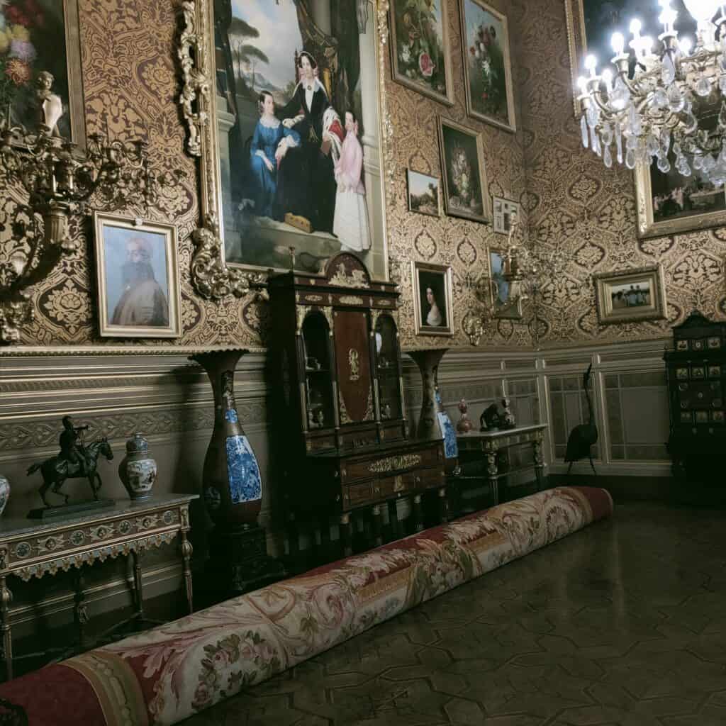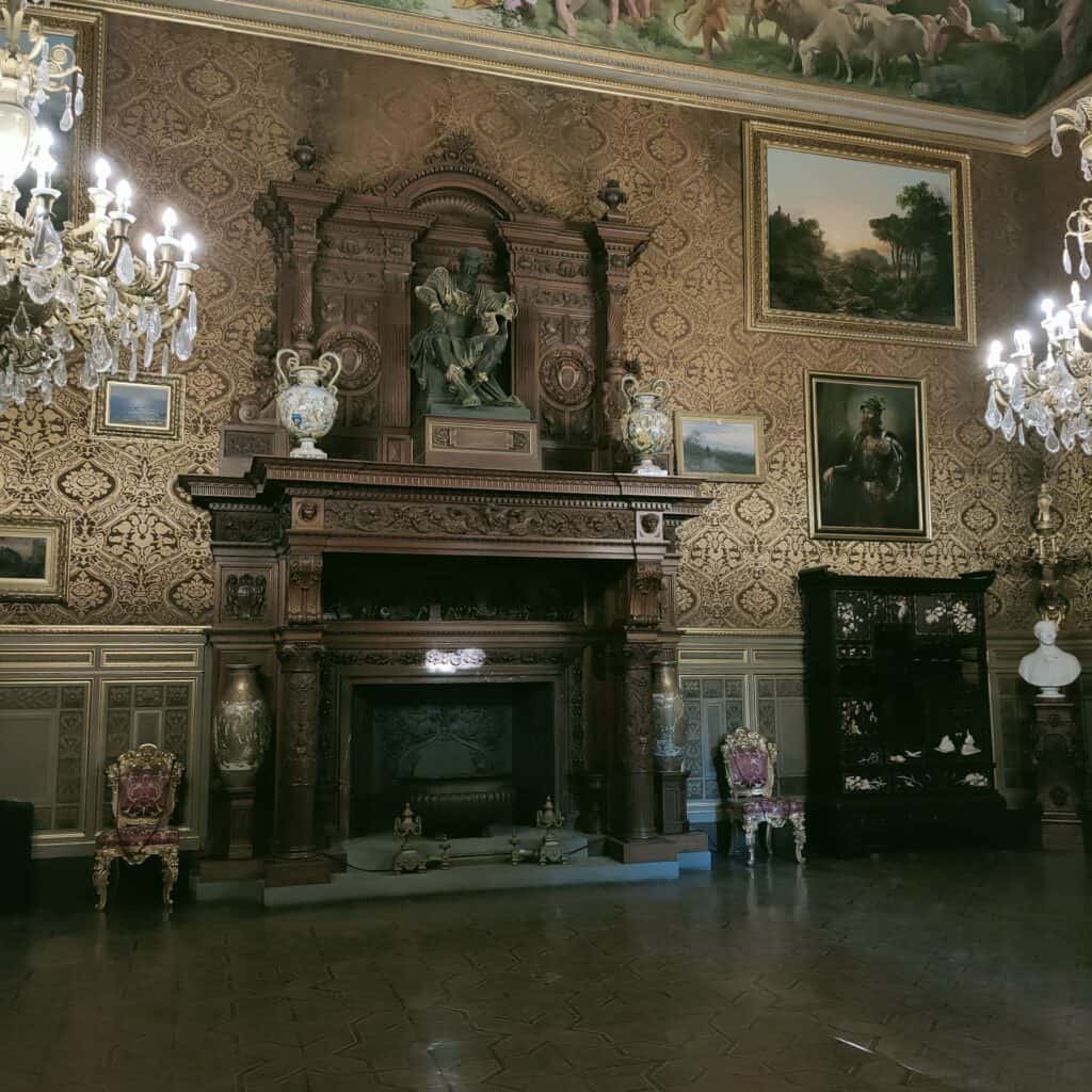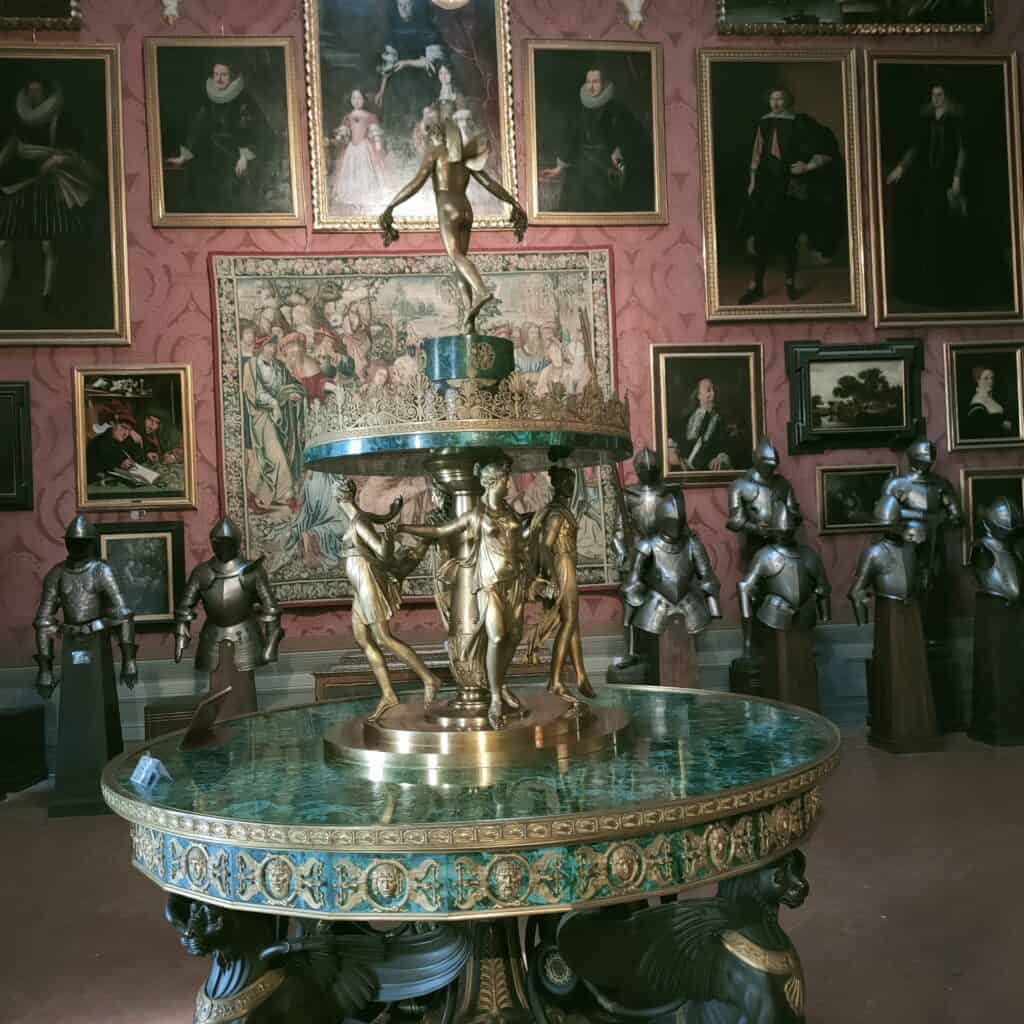 All’interno delle sue sale in stili diversi, tra cui neo-gotici e rinascimentali, si trovano oltre 50mila opere artistiche, tra dipinti, armature, porcellane, arredi antichi e molto altro ancora.