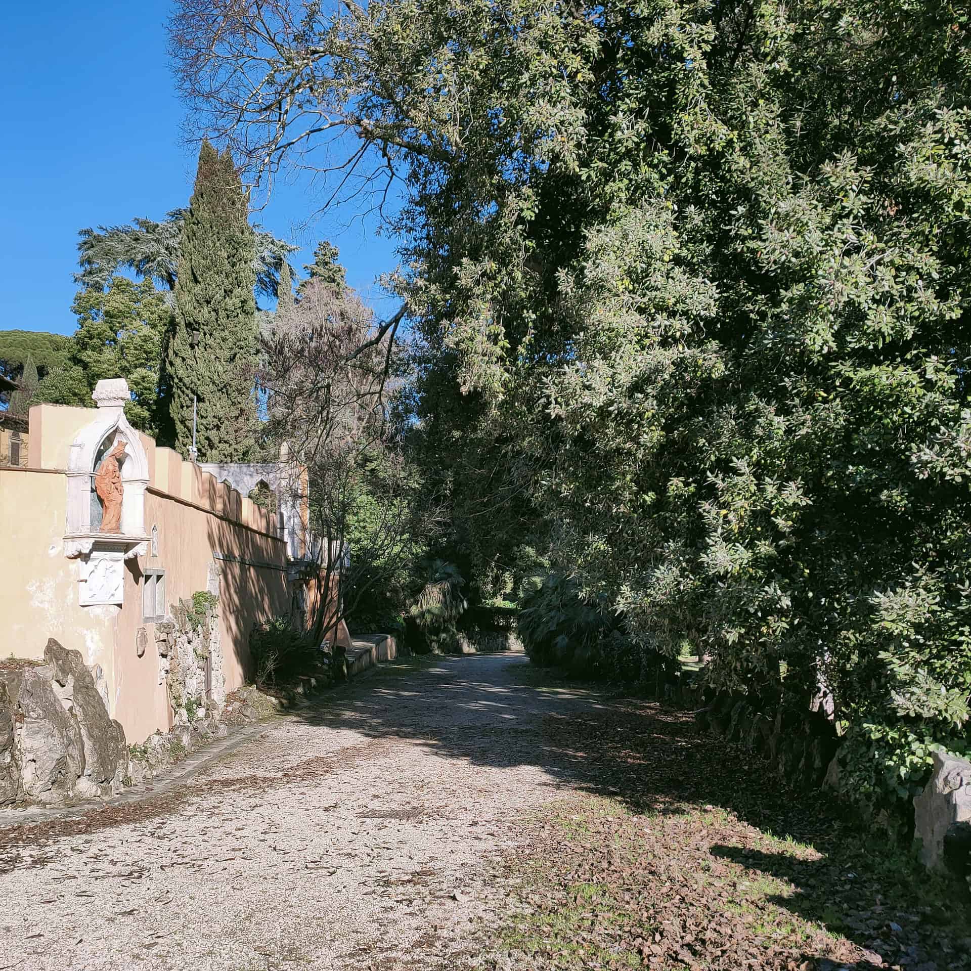 Il Museo è immerso in un grande parco all’inglese con fontane e sculture. Fatto da vialetti che si intrecciano tra loro e alberi ad alto fusto, tra cui i cipressi, l’albero tipico toscano. A fare da ornamento un piccolo lago sulle cui sponde si trova un tempietto in stile neo-egizio.